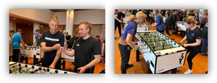 Die Tische waren zunächst etwas gewöhnungsbedürftig („hä, warum läuft der Ball hier anders?!“), doch mit jedem Match lief es besser. Isabella und Johann zeigten in den Einzeldisziplinen starke Leistungen und sammelten gleich mehrere Siege! 👏